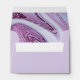 This wedding design set, with it's abstract pattern of flowing ripples and veins of glittering plum, brings to mind eye-catching rock formations and sparkling gems. The striking color palette in shades from lilac and lavender to soft periwinkle adds to the appeal. The coordinating envelope shown here has all the above with an abstract interior and optional soft lilac exterior. Easily add your initials and address using the provided template. Search ID903 to see other color choices and coordinating pieces for this unique wedding collection.