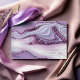 This wedding design set, with it's abstract pattern of flowing ripples and veins of glittering plum, brings to mind eye-catching rock formations and sparkling gems. The striking color palette in shades from lilac and lavender to soft periwinkle adds to the appeal. The guest book shown here has all the above with a layout that makes it stand out from the crowd. Easily add your initials and wedding date using the provided template. Search ID903 to see other color choices and coordinating pieces for this unique wedding collection.