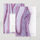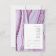 This wedding design set, with it's abstract pattern of flowing ripples and veins of glittering plum, brings to mind eye-catching rock formations and sparkling gems. The striking color palette in shades from lilac and lavender to soft periwinkle adds to the appeal. The RSVP card shown here has all the above with a layout that makes it stand out from the crowd. Easily add your reply by date and preferred wording using the provided template. Search ID903 to see other color choices and coordinating pieces for this unique wedding collection.