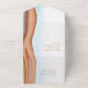 This wedding design set, with it's abstract pattern of flowing ripples and veins of glittering gold, brings to mind eye-catching rock formations and Southwestern landscapes. A colorful palette in shades from rust, and terra cotta through sky blue adds to the appeal. The combined invitation and RSVP shown here has all the above on a white background with a layout that makes it stand out from the crowd. Easily add your event details using the provided template. Search ID903 to see other color choices and coordinating pieces for this unique wedding collection.