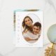 This design set, with it's abstract pattern of flowing ripples and veins of glittering gold, brings to mind eye-catching rock formations, flowing sand dunes, and gentle ocean waves. The striking colors of sea and sand for this set adds to the appeal. The wedding 'Thank You' card shown here has all the above along with your favorite photo and a template to easily add your personal thank you message. Search ID903 to see other color choices and coordinating pieces for this unique wedding collection.