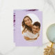 This wedding design set, with it's abstract pattern of flowing ripples and veins of glittering plum, brings to mind eye-catching rock formations and sparkling gems. The striking color palette in shades from lilac and lavender to soft periwinkle adds to the appeal. The wedding 'Thank You' card shown here has all the above on a lilac background along with your favorite photo and a template to easily add your personal thank you message. Search ID903 to see other color choices and coordinating pieces for this unique wedding collection.