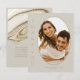 This wedding design set, with it's abstract pattern of flowing ripples and veins of glittering gold, brings to mind eye-catching rock formations and sparkling gems. The neutral color palette in shades from champagne to soapstone adds to the appeal. The wedding 'Thank You' card shown here with n a stone background, has all the above along with your favorite photo and a template to easily add your personal thank you message. Search ID903 to see other color choices and coordinating pieces for this unique wedding collection.