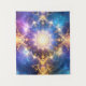 Transform your space with this mesmerizing abstract tapestry featuring a radiant lotus or mandala at its core. Emanating ethereal blue and gold light flows against a deep, dark background, the symmetrical design evokes a sense of spiritual energy, harmony, and tranquility. Perfect for creating a focal point in your living room, bedroom, meditation space, or yoga studio. This stunning piece of digital artwork adds a touch of cosmic beauty and mystical energy to any room. The vibrant colors and intricate glowing patterns are sure to inspire peace and transcendence.