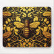 Abstract gold bee and golden floral pattern Mouse Pad in black yellow color.