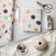 This seamless abstract pattern wrapping paper features a dynamic mix of textured gold dots and shimmering brushstrokes, paired with playful accents in teal, pink, and dark blue. Set against a soft, neutral background, the design exudes a modern, artistic vibe with a hand-drawn, expressive feel. Perfect for bold, creative aesthetics with a touch of elegance and sparkle.