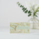 This elegant business card features an abstract gold, mint green, and white marbled background, with a mint green name banner. The banner is thinly lined in shiny gold. Your custom text is in gold, also. A darker gold silhouette dancer leaps on the left side of the front. The back of the card has the same background, with a field for your information in gray. Beautiful!