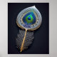 An intricate and detailed abstract illustration of a peacock feather. The artwork has a dark background to provide contrast and highlight the vivid colors. A beautiful and captivating artistic expression of the intricate beauty of nature.