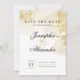 With its sophisticated contemporary design and timeless gilded elegance, this card appeals to couples with discerning tastes and a desire for luxury. Against a pristine white background, it stands out as a symbol of the couple's individuality and style. From its trendsetting glitter accents to its classic yet modern aesthetic, every detail is thoughtfully curated to create a save the date announcement that is as memorable as the love it celebrates.