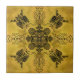This is an interesting design that was challenging and fun to make. The art piece includes gothic and tribal tattoo inspired elements with intricate details in black ink outline line work with a four sided repeating pattern on top of a golden colored background papyrus paper and blotchy batik fabric style look to it.