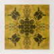 This is an interesting design that was challenging and fun to make. The art piece includes gothic and tribal tattoo inspired elements with intricate details in black ink outline line work with a four sided repeating pattern on top of a golden colored background papyrus paper and blotchy batik fabric style look to it.