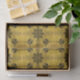 This is an interesting design that was challenging and fun to make. The art piece includes gothic and tribal tattoo inspired elements with intricate details in black ink outline line work with a four sided repeating pattern on top of a golden colored background papyrus paper and blotchy batik fabric style look to it.