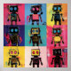 This lively collection of abstract robot characters brings a modern, urban twist to futuristic designs. Each robot is portrayed in a unique combination of vibrant colors and expressive brushstrokes, blending graffiti’s raw energy with pop art's playful spirit. The blocky figures and dynamic compositions create a fun, eye-catching visual that adds character and flair to any space. Perfect for fans of robotics, street art, and pop culture, these bold robot portraits make a statement in modern interiors