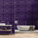 Update the look of your walls with wallpaper. This textured vinyl wallpaper features a dark and light gray leaf print on a purple background. This abstract leaf pattern will compliment a modern home or office.