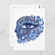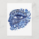 An illustrations of an abstract Greek evil eye and Greek key within a face. Which is the Greek and Turkish symbol of protection.