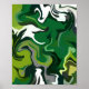 This design features an abstract composition with fluid patterns in shades of green, white, and grey. The swirling shapes create a sense of natural flow and energy, reminiscent of organic forms or a lush forest. The blending of colors highlights depth and balance, offering a tranquil yet dynamic aesthetic.
