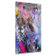 A wonderful messy, grungy mix of paint strokes, splatters and marks in a colorful palette of purple, pink, blue, green, yellow, black and white. Personalize with an initial.