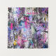 A wonderful messy, grungy mix of paint strokes, splatters and marks in a colorful palette of purple, pink, blue, green, yellow, black and white.