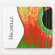 Musical instrument Abstract guitar mousepad with red, yellow and green colors. With black lettering, you can personalize with your own name. A fun music addition to your home office or as a gift for the musician in your life.