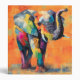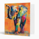 A joyful elephant with its trunk raised, bursting with rainbow colors which brings happiness, positive energy, and a playful spirit.