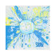 A whimsical sun in a scribbly and messy abstract word art style colored blue and yellow.