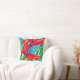 This throw pillow features a colorful abstract image of a tropical Hawaiian Bird of Paradise flower. Bold and beautiful shades of orange, green, blue, and yellow will add a pop of color to any patio or room in your home.