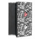 Fun iPad Mini folio style case, done in a black and white abstract doodle art coloring page look, with a pink heart. Personalize the pink name, for yourself or as a great gift idea for her.