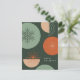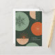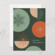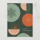This abstract design features various circular elements in festive colors, including greens, oranges, and light beige, decorated with minimalist snowflakes and star shapes. The simple, modern look makes it versatile for any holiday greeting.