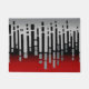 Contemporary painted illustration with vertical stripes in red, light grey and black