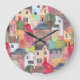 Abstract Houses: Watercolor Seamless Background. Large Clock