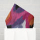 Decoupage tissue paper featuring a seamless pattern of organic shapes in an ikat style. The prominent colors are pink, purple, black, white, orange and gold yellow.