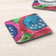Circles of deep blue and vivid magenta with shades of hot pink cover this set of plastic coasters. Brings a bright, artistic touch to your table.