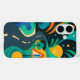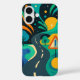 This modern and sleek iPhone 16 case features a striking geometric abstract design. The deep navy background contrasts beautifully with vibrant shapes, including teal and coral triangles, soft circles, and sharp lines. The case showcases a minimalist yet dynamic aesthetic, with a bold and contemporary look that emphasizes clean lines and harmonious color blocks. Perfect for those who appreciate sophisticated, modern design.