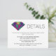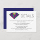 Abstract geometric jewel gemstone modern wedding details card 1. This trendy wedding design displays a diamond with triangle blocks in navy blue, violet purple, ruby red, temerald green and gold with FAUX metallic gold glitter foil outline. Use it as reception, directions or accommodations card, for your website or registry etc.