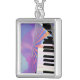 Abstract Keyboards and Stripes Silver Plated Necklace