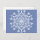 Abstract Lacy Fractal Snowflake on Blue Background Holiday Postcard