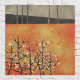 Contemporary abstract landscape painting of blackthorn blossom in spring in soft orange and grey. Original art by Nic Squirrell.