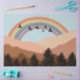 A beautiful design showcasing a forest with trees, mountain landscape, rainbow and flying birds. This design uses neutral color tones to create an abstract art feel. A rustic design ideal for all the seasons, Summer, Winter, Autumn, Fall and Spring.