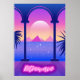 A set of abstract landscape poster in retro futurism style Retro wave and cyberpunk Neon colors, Greek columns and a statue