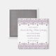 This save the date magnet features a lavender , whimsical border in an abstract pattern.The wedding details are written in modern type.