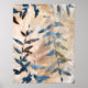 Abstract layered leaves and mixed media markings in a blue and neutral color palette.