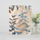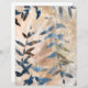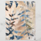 Abstract layered leaves and mixed media markings in a blue and neutral color palette.
