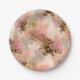 It features brushstroke-like textures in shades of pink, peach, light brown, and grey, interspersed with shimmering gold, glittery splatters and leopard print-like spots in darker browns and black.