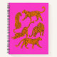 Abstract fashionable leopards with red lips and earnings in fuchsia pink background