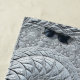 This monochrome beach towel features an abstract spiral fractal design in light gray and black.