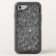 Protect your iPhone 8/7 with an impact resistant OtterBox case featuring a distinctive abstract black and white photograph of light patterns on undulating water. A circular window showcases the Apple logo on the back of the phone.