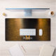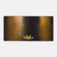 Abstract lights sea shiny bronzed Monogram Desk Mat. Unique cool desk mat for office, room, work, workshop, gaming room.. Personalize with your custom initial and name. Photo of sparkly glistening night lights sea reflection in black and gold bronze shiny colors.
