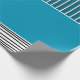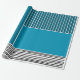 This wrapping paper has a geometric design of a large teal rectangle in the upper left corner, darker teal stripes in the upper right corner, a lighter smaller teal rectangle below the stripes, and black lines across the bottom. If you like the design but prefer different colors, message me.
