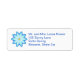 An abstract painting of a blue lotus flower, by Cheryl Paton, is printed on custom return address labels. The text can easily be changed on the template form.