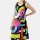 Colorful abstract pattern with word love inside, eyes, tears, color blocks. Pattern illustration with bright color-blocking shapes. Trendy colorful pop art geometric pattern with bold shapes on black.